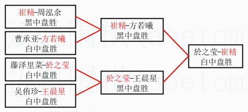 | 2.上半区半决赛崔精获胜, 比分:崔精 1:0 方若曦。棋局: | ||