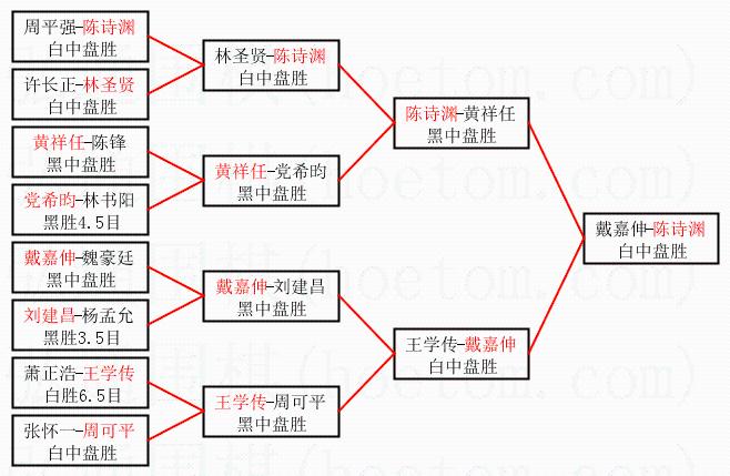 | 2.上半区半决赛陈诗渊获胜, 比分:陈诗渊 1:0 黄祥任。棋局: | ||