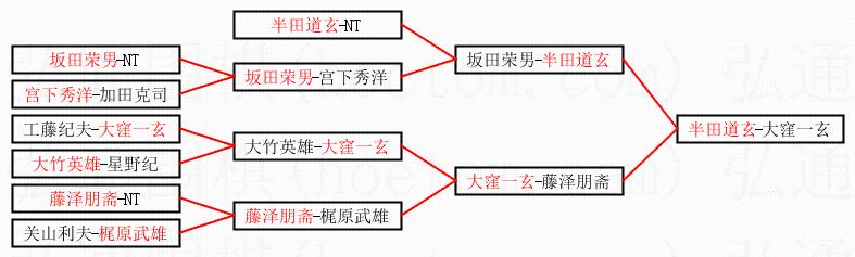 | 2.上半区半决赛半田道玄获胜, 比分:半田道玄 1:0 坂田荣男。棋局: | ||