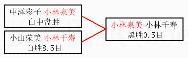 2.上半区半决赛小林泉美获胜, 比分:小林泉美 1:0 中泽彩子。棋局: