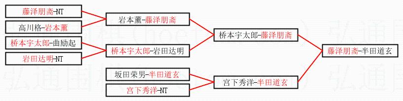 2.上半区半决赛藤泽朋斋获胜, 比分:藤泽朋斋 1:0 桥本宇太郎。棋局: