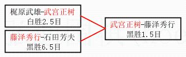 2.上半区半决赛武宫正树获胜, 比分:武宫正树 1:0 梶原武雄。棋局:
