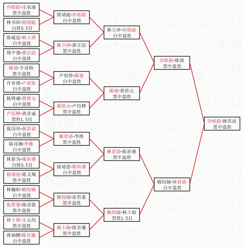 | 1.许皓鋐获得冠军,林君谚获得亚军。决赛比分:许皓鋐4:0林君谚。棋局: | ||