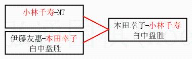 | 1.小林千寿获得冠军,本田幸子获得亚军。决赛比分:小林千寿2:1本田幸子。棋局: | ||