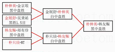 1.朴伸英获得冠军,韩友赈获得亚军。决赛比分:朴伸英1:0韩友赈。棋局: