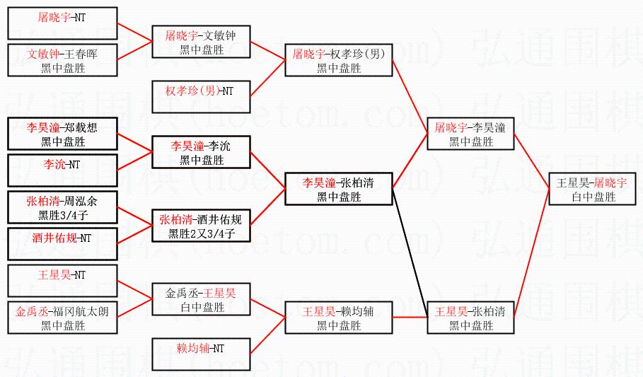 | 1.屠晓宇获得冠军,王星昊获得亚军。决赛比分:屠晓宇1:0王星昊。棋局: | ||