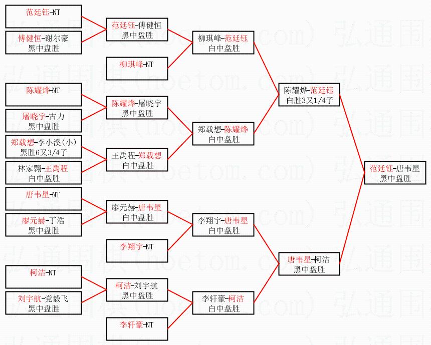 1.范廷钰获得冠军,唐韦星获得亚军。决赛比分:范廷钰1:0唐韦星。棋局: