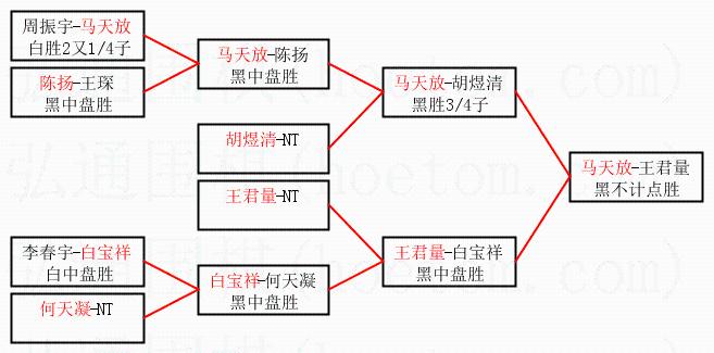 | 1.马天放获得冠军,王君量获得亚军。决赛比分:马天放2:1王君量。棋局: | ||