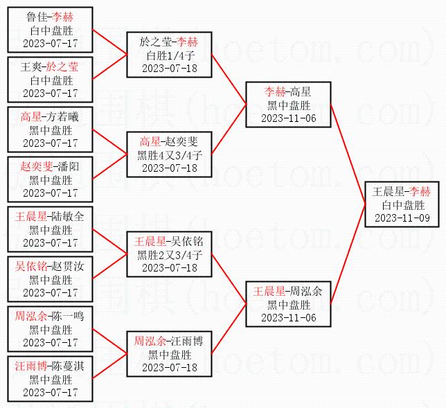 1.李赫获得冠军,王晨星获得亚军。决赛比分:李赫2:0王晨星。棋局: