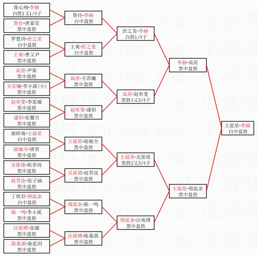 1.李赫获得冠军,王晨星获得亚军。决赛比分:李赫2:0王晨星。棋局: