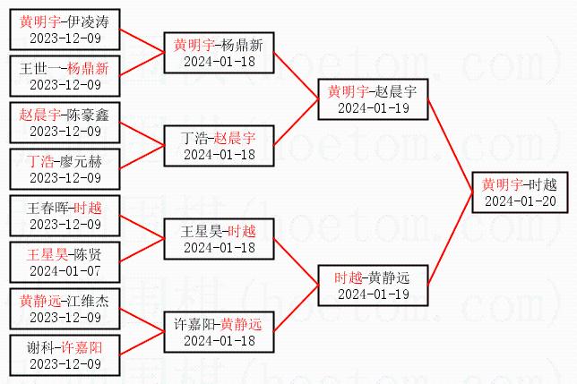 1.黄明宇获得冠军,时越获得亚军。决赛比分:黄明宇1:0时越。棋局: