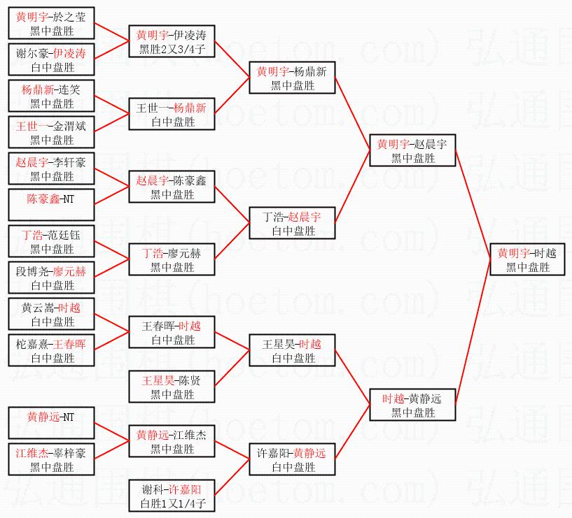 1.黄明宇获得冠军,时越获得亚军。决赛比分:黄明宇1:0时越。棋局: