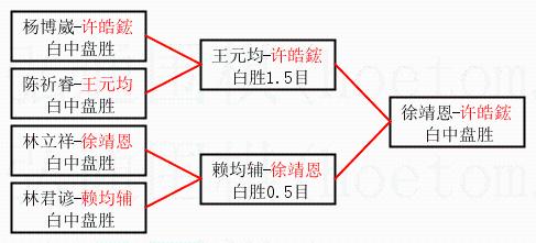 | 3.下半区半决赛徐靖恩获胜,比分:徐靖恩1:0赖均辅。棋局: | ||