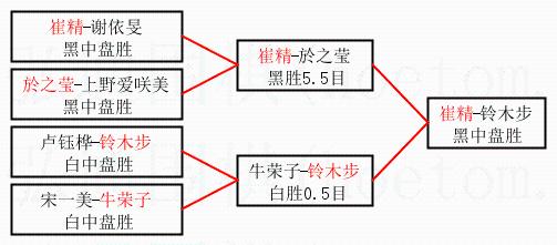 | 1.崔精获得冠军,铃木步获得亚军。决赛比分:崔精1:0铃木步。棋局: | ||