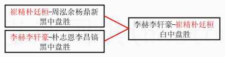 2.上半区半决赛崔精朴廷桓获胜, 比分:崔精朴廷桓 1:0 周泓余杨鼎新。棋局: