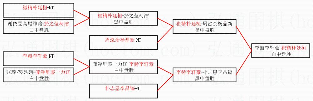 | 2.上半区半决赛崔精朴廷桓获胜, 比分:崔精朴廷桓 1:0 周泓余杨鼎新。棋局: | ||