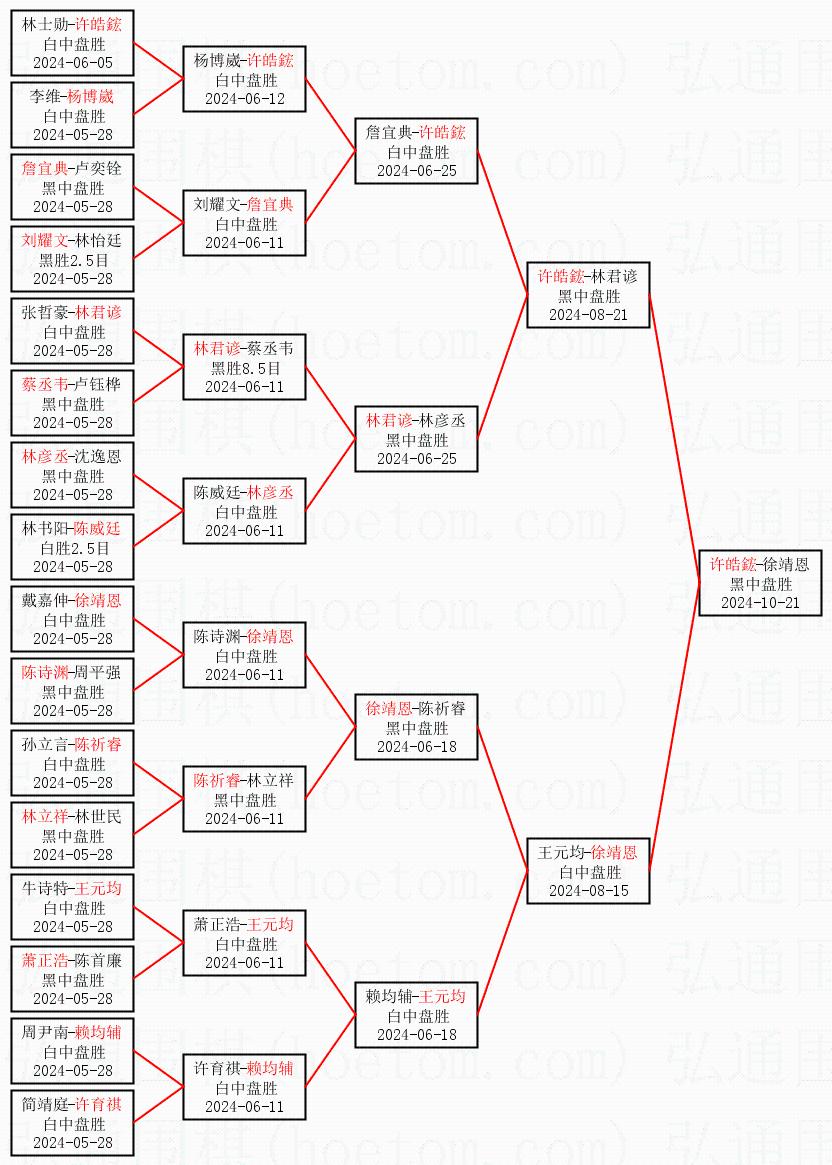 1.许皓鋐获得冠军,徐靖恩获得亚军。决赛比分:许皓鋐2:1徐靖恩。棋局: