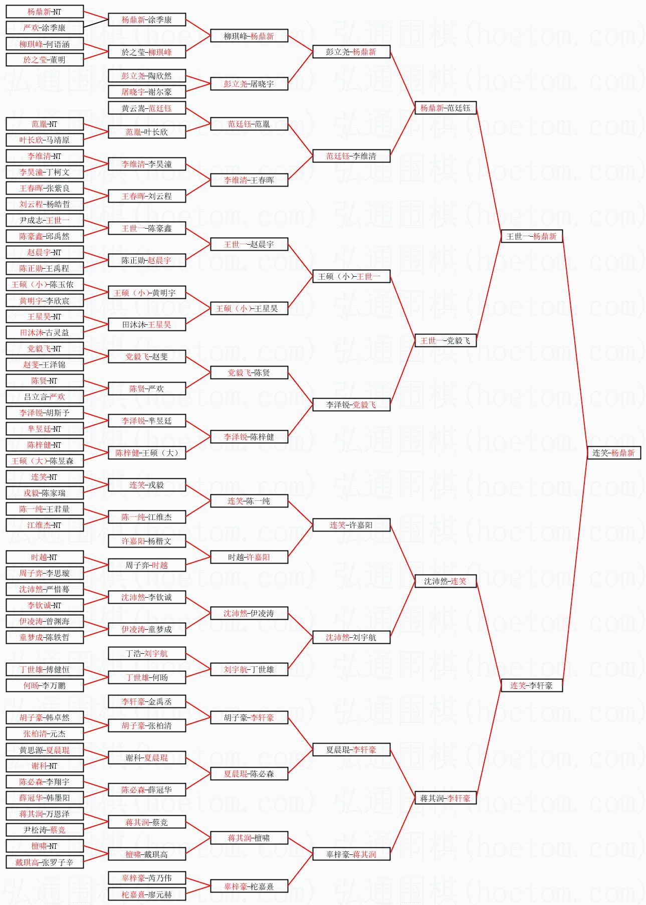 1.杨鼎新获得冠军,连笑获得亚军。决赛比分:杨鼎新1:0连笑。棋局: