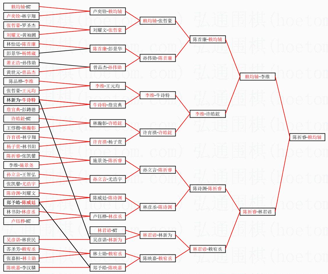 1.赖均辅获得冠军,陈祈睿获得亚军。决赛比分:赖均辅4:0陈祈睿。棋局: