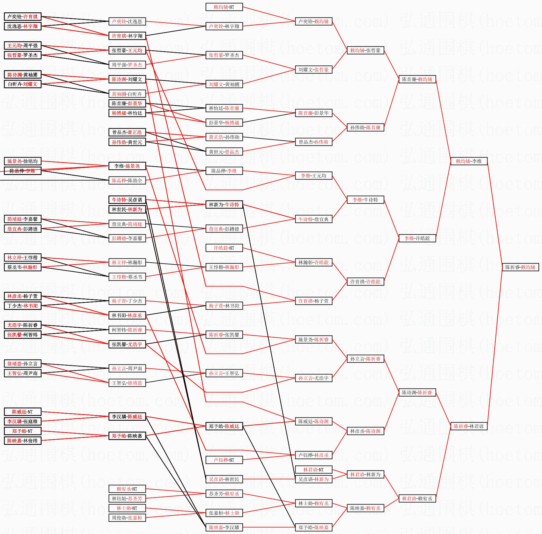 | 3.下半区半决赛陈祈睿获胜,比分:陈祈睿2:1林君谚。棋局: | ||