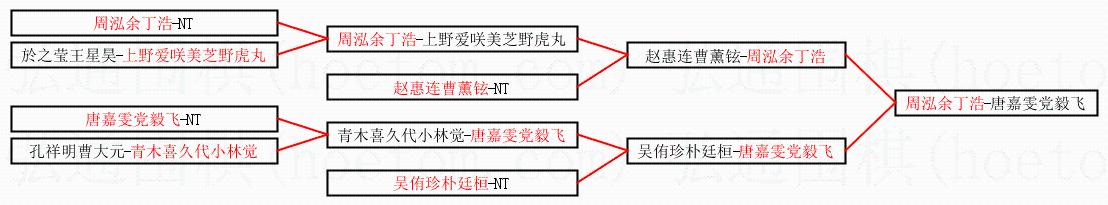 2.上半区半决赛周泓余丁浩获胜, 比分:周泓余丁浩 1:0 赵惠连曹薰铉。棋局: