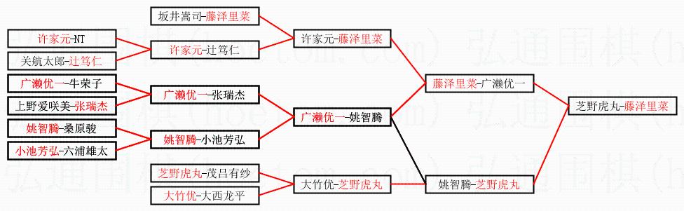 | 1.藤泽里菜获得冠军,芝野虎丸获得亚军。决赛比分:藤泽里菜1:0芝野虎丸。棋局: | ||