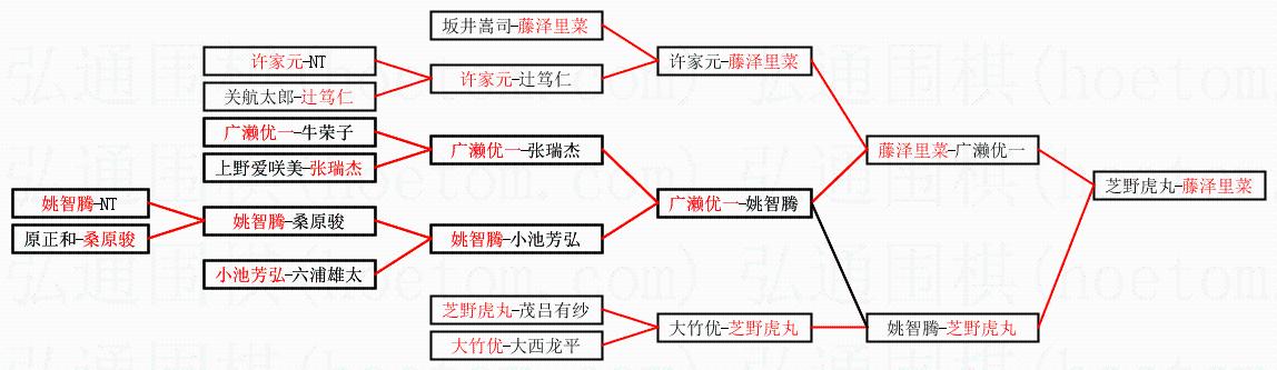 | 1.藤泽里菜获得冠军,芝野虎丸获得亚军。决赛比分:藤泽里菜1:0芝野虎丸。棋局: | ||
