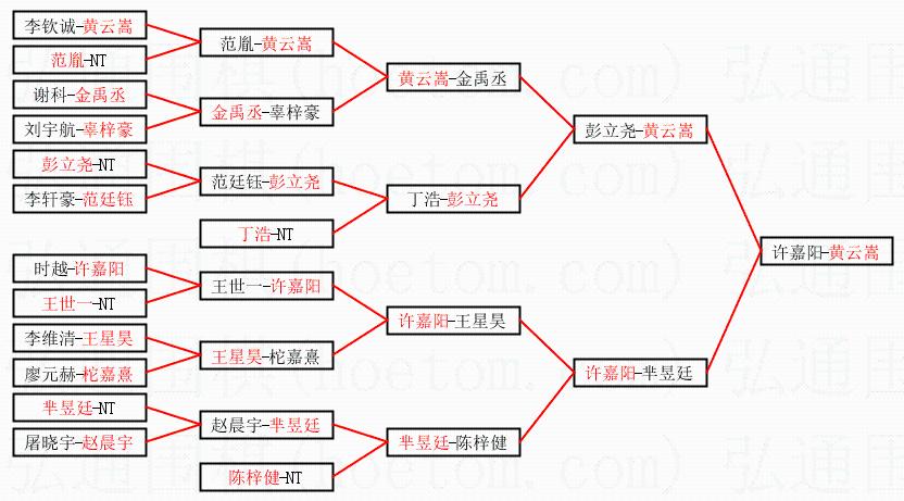 1.黄云嵩获得冠军,许嘉阳获得亚军。决赛比分:黄云嵩1:0许嘉阳。棋局: