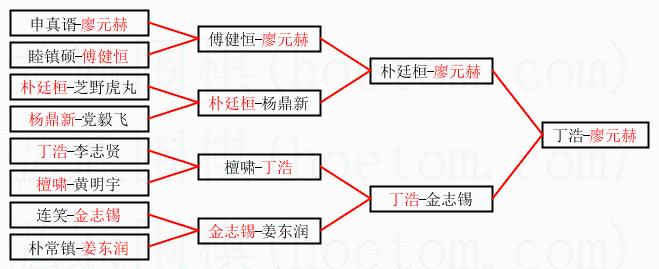 2.上半区半决赛廖元赫获胜, 比分:廖元赫 1:0 朴廷桓。棋局: