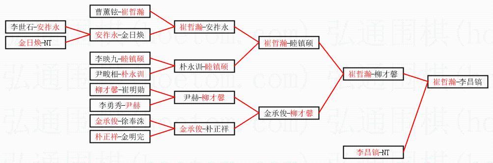1.崔哲瀚获得冠军,李昌镐获得亚军。决赛比分:崔哲瀚3:1李昌镐。棋局: