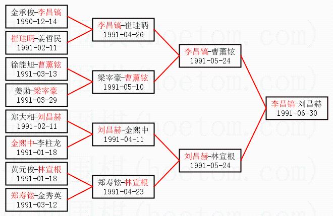 | 1.李昌镐获得冠军,刘昌赫获得亚军。决赛比分:李昌镐3:0刘昌赫。棋局: | ||