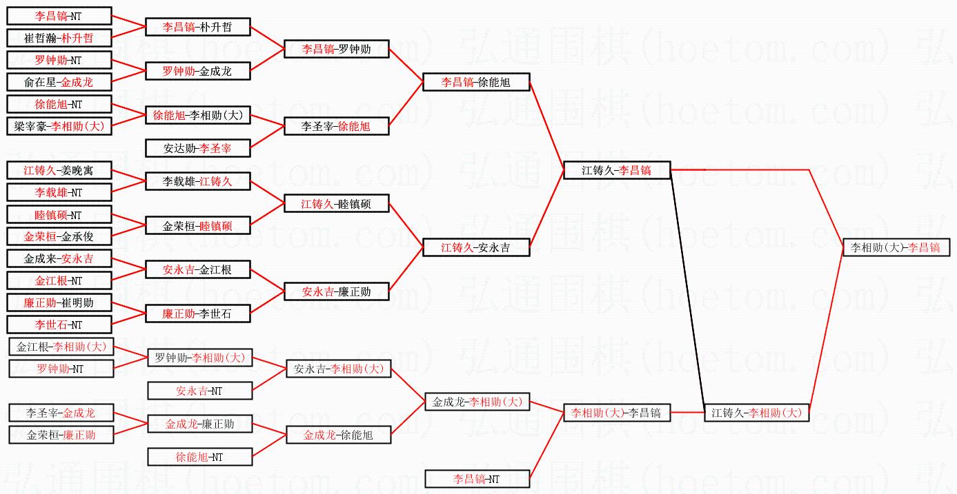 1.李昌镐获得冠军,李相勋(大)获得亚军。决赛比分:李昌镐2:1李相勋(大)。棋局: