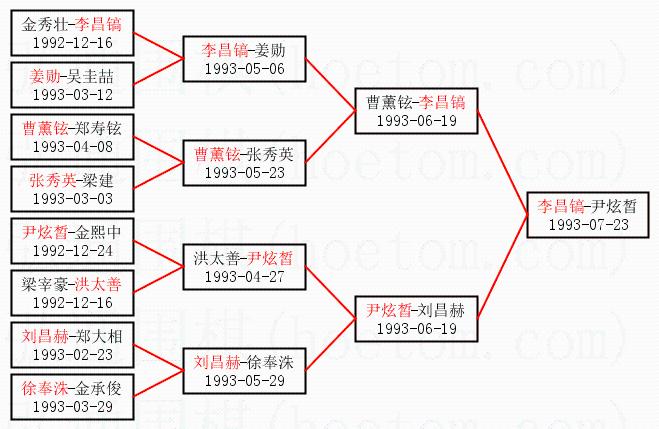 1.李昌镐获得冠军,尹炫皙获得亚军。决赛比分:李昌镐3:0尹炫皙。棋局: