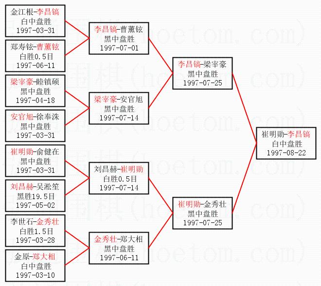 | 1.李昌镐获得冠军,崔明勋获得亚军。决赛比分:李昌镐3:0崔明勋。棋局: | ||