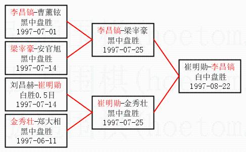 | 1.李昌镐获得冠军,崔明勋获得亚军。决赛比分:李昌镐3:0崔明勋。棋局: | ||