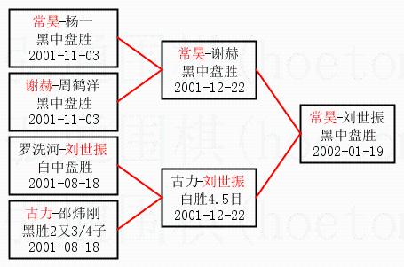 1.常昊获得冠军,刘世振获得亚军。决赛比分:常昊1:0刘世振。棋局: