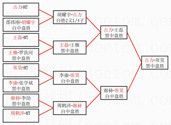 1.古力获得冠军,常昊获得亚军。决赛比分:古力1:0常昊。棋局: