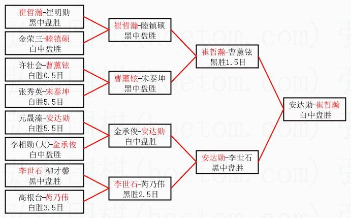 | 1.崔哲瀚获得冠军,安达勋获得亚军。决赛比分:崔哲瀚3:0安达勋。棋局: | ||