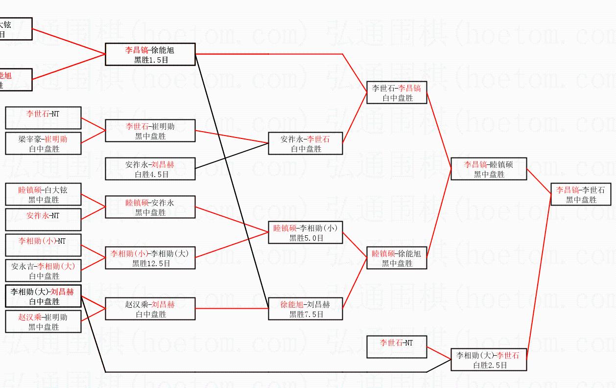 3.下半区半决赛李世石获胜,比分:李世石1:0李相勋(大)。棋局: