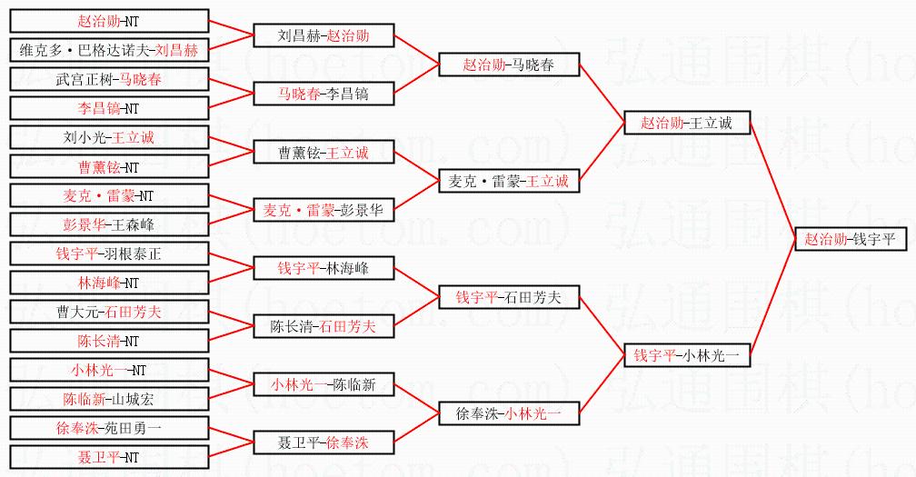 | 1.赵治勋获得冠军,钱宇平获得亚军。决赛比分:赵治勋1:0钱宇平。棋局: | ||