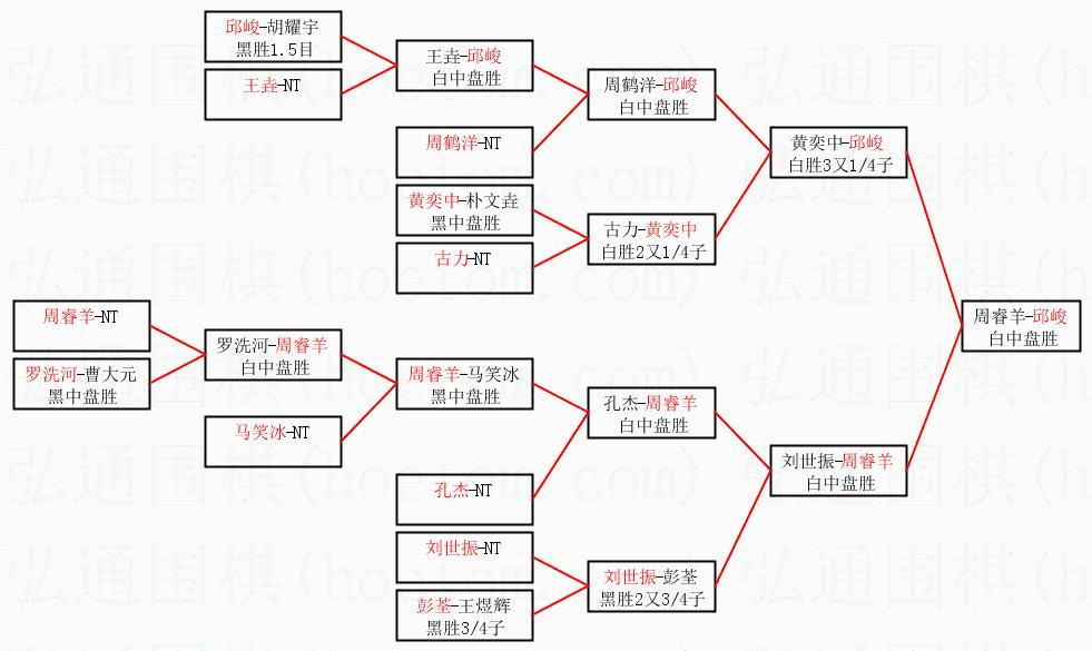 1.邱峻获得冠军,周睿羊获得亚军。决赛比分:邱峻1:0周睿羊。棋局:
