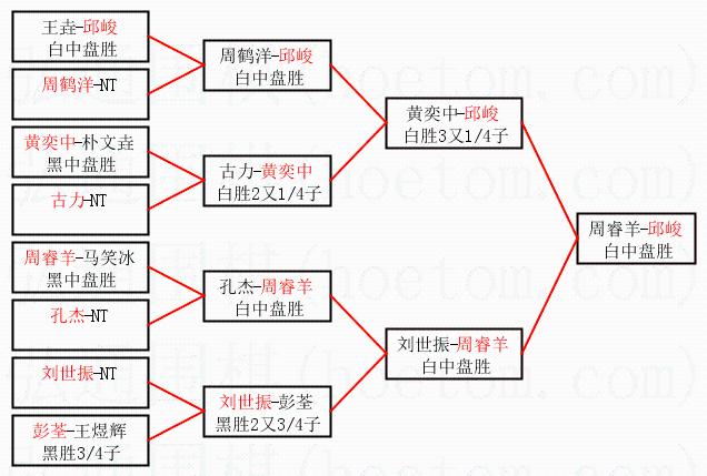 1.邱峻获得冠军,周睿羊获得亚军。决赛比分:邱峻1:0周睿羊。棋局: