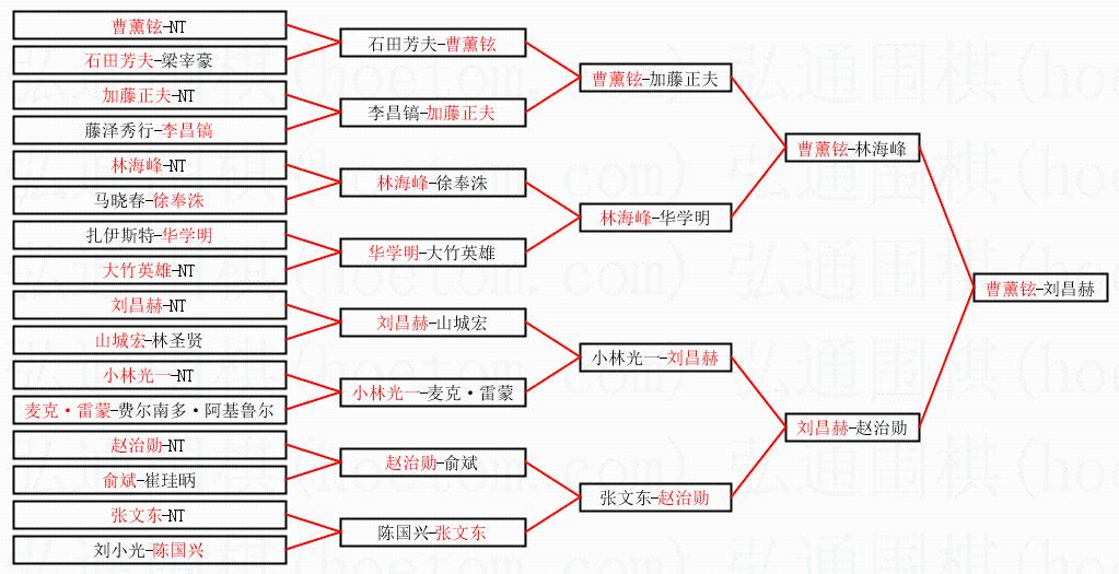 2.上半区半决赛曹薰铉获胜, 比分:曹薰铉 1:0 林海峰。棋局: