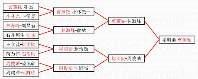 | 1.曹薰铉获得冠军,崔明勋获得亚军。决赛比分:曹薰铉1:0崔明勋。棋局: | ||