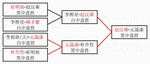 | 3.下半区半决赛元晟溱获胜,比分:元晟溱1:0朴升哲。棋局: | ||