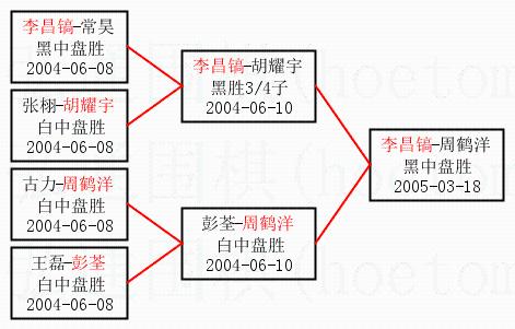 | 2.上半区半决赛李昌镐获胜, 比分:李昌镐 1:0 胡耀宇。棋局: | ||