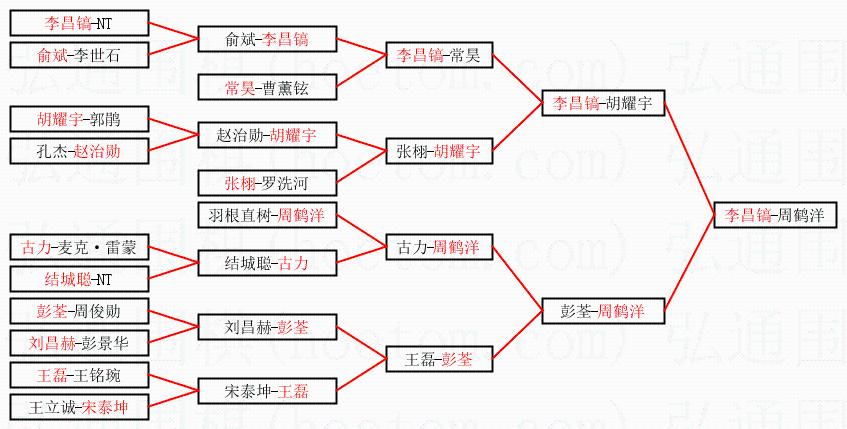 1.李昌镐获得冠军,周鹤洋获得亚军。决赛比分:李昌镐2:1周鹤洋。棋局: