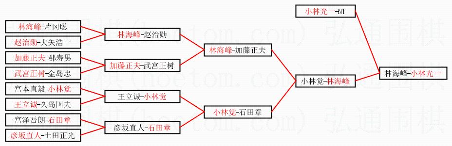 1.小林光一获得冠军,林海峰获得亚军。决赛比分:小林光一3:0林海峰。棋局:
