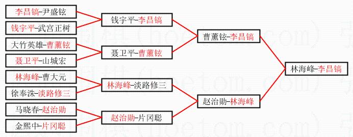 | 1.李昌镐获得冠军,林海峰获得亚军。决赛比分:李昌镐3:2林海峰。棋局: | ||