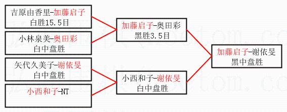 | 1.加藤启子获得冠军,谢依旻获得亚军。决赛比分:加藤启子2:0谢依旻。棋局: | ||